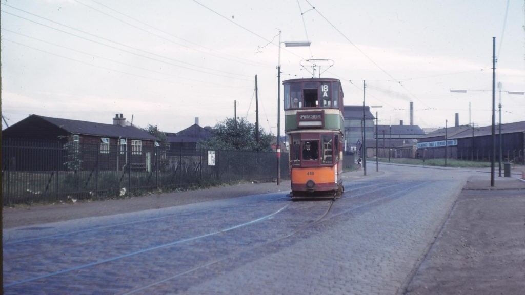 Tram 488 was one of a batch of seventy built as the final open-topped, un-canopied Standard trams, featuring 90-degree staircases. These later models included small improvements such as louvered ventilator strips instead of perforated ones and inside-spring trolley masts. Glasgow used colour codes for their tram routes with 488 originally being a Green Route tramcar. 488 was fitted with a Brill 21E 6-foot wheelbase truck, Westinghouse 49B 30 HP motors, and Westinghouse Type 90M controllers. In July 1923, it received platform vestibules and a new 7-foot wheelbase Brill truck while retaining its Green Route colour. In May 1931, 488 was extensively reconditioned with enclosed balconies, upholstered seating, two 60 HP GEC WT28 motors, a Brush 21E 8-foot wheelbase truck, English Electric CDB2 controllers, heaters, and air brakes. Its route colour changed from Green to White, and it was allocated to Dalmarnock Depot. Subsequent years saw regular maintenance and repaints, including a simplified “Bus Green” livery introduced in 1939 that removed the earlier Greek Corner detailing. 488 continued in service through the 1940s and beyond, remaining a fine example of the evolution of Glasgow’s Standard tram design.
